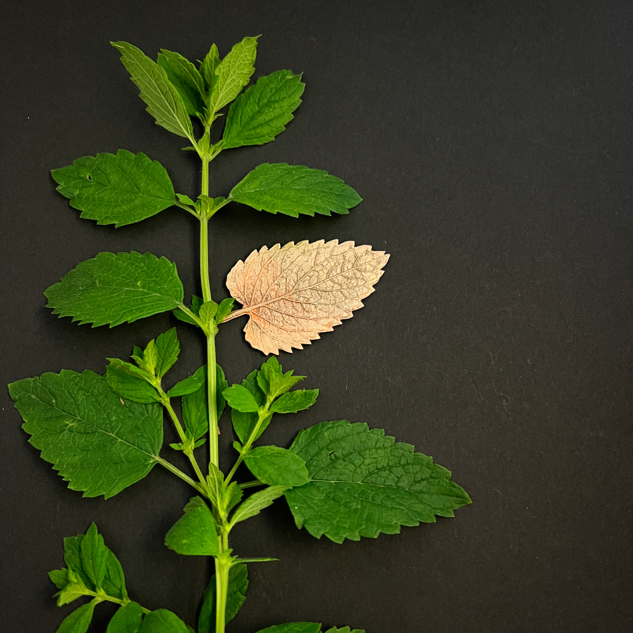 Réplique en bronze et plante de fougères