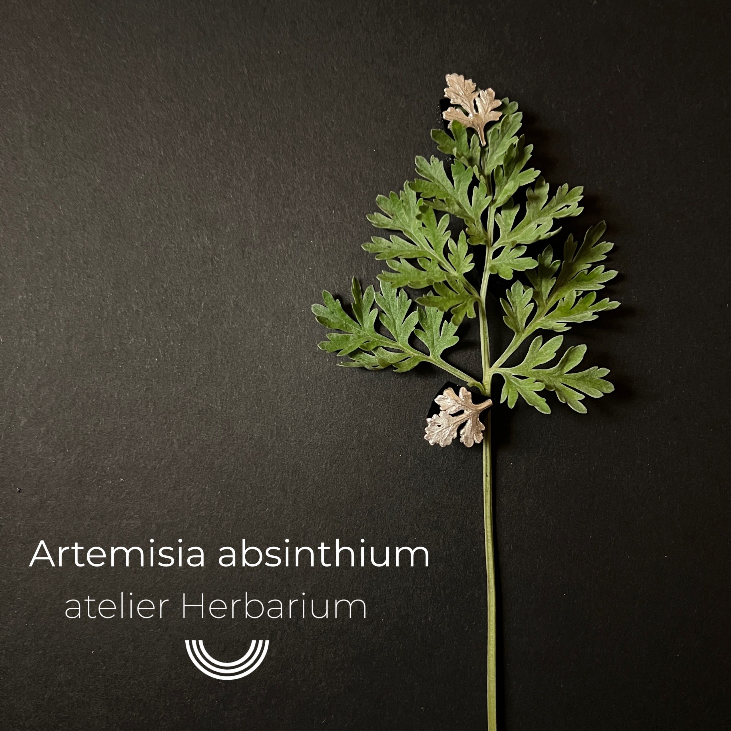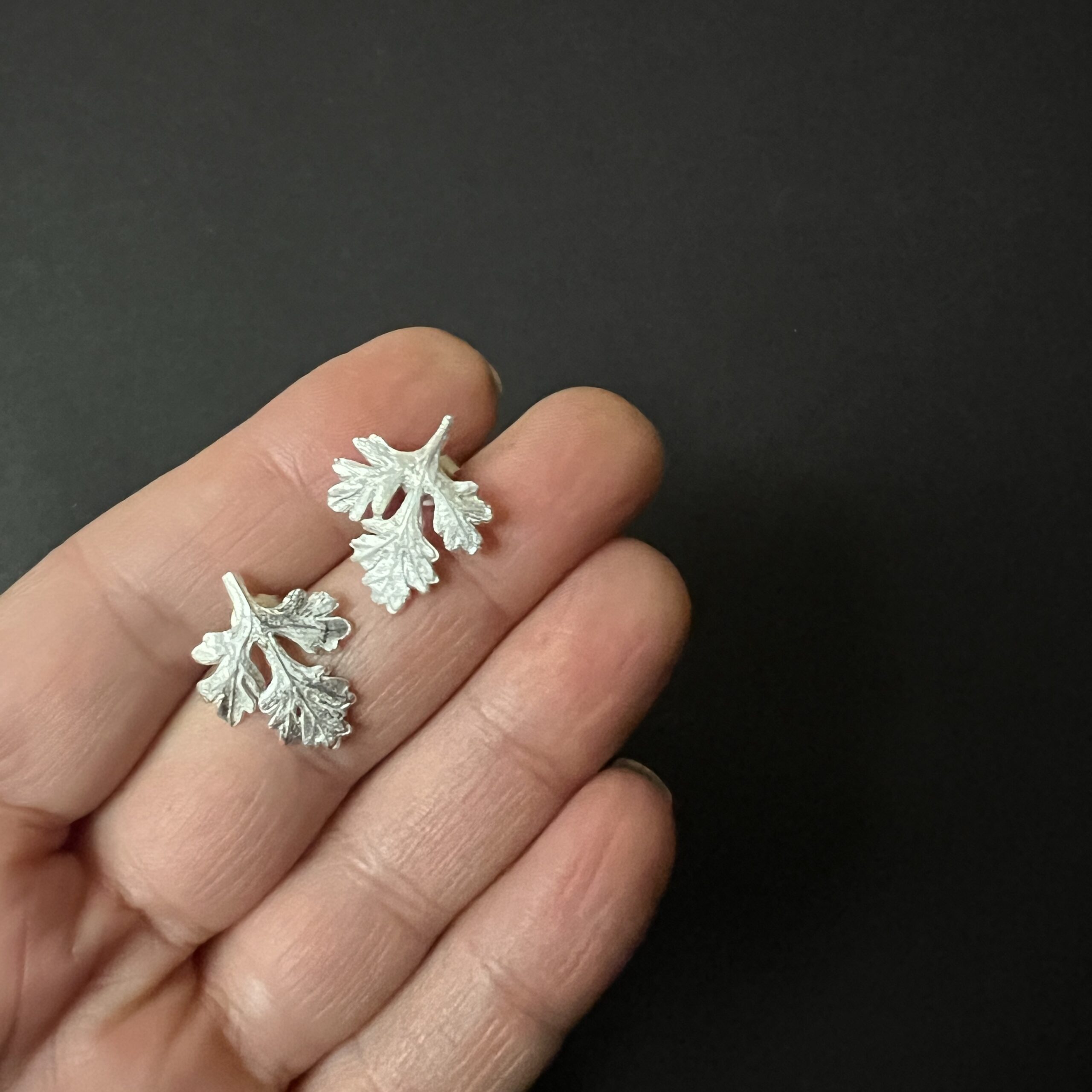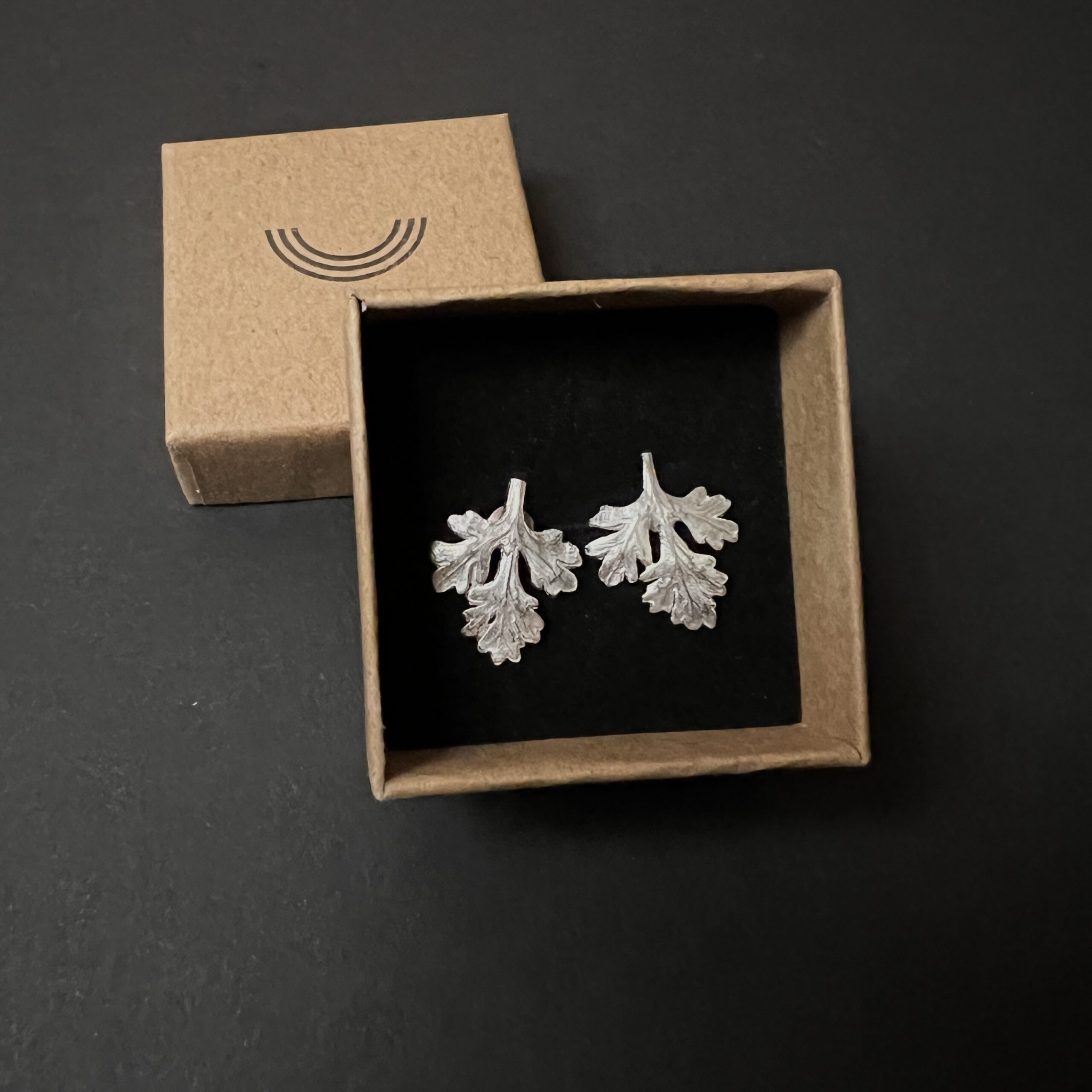 Clous d’oreilles en argent 925, folioles d’absinthe officinale.