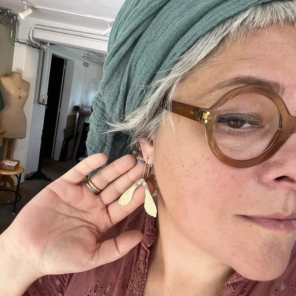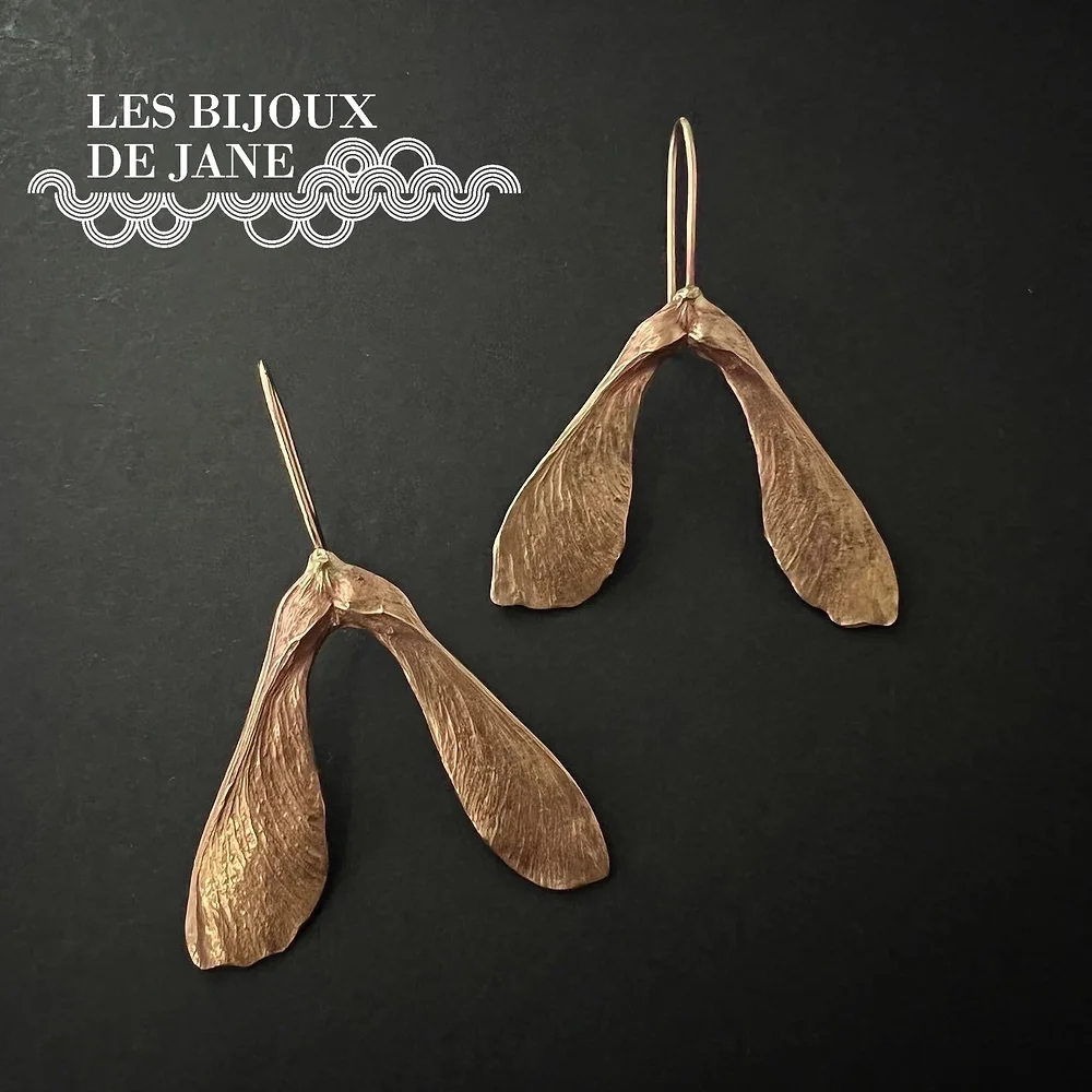 Répliques de samares d’érable. Boucles d’oreilles berceuses en bronze massif.